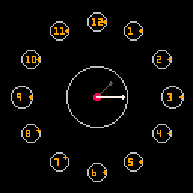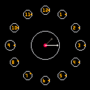 Numbers like health and level are shown implicitely as dots at the position of the correlating number on a clock.